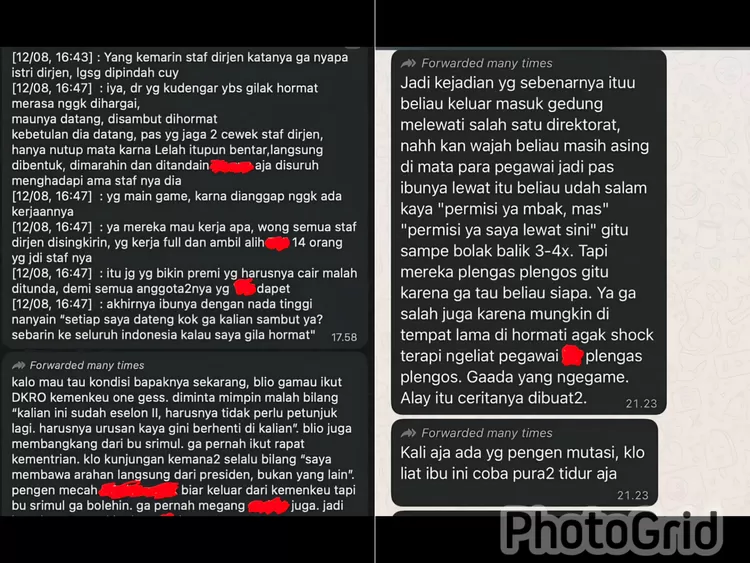 “Dirjen minta duit operasional sebulan Rp200 juta. Orang sekre pusing semua,” tulis isi percakapan yang beredar.