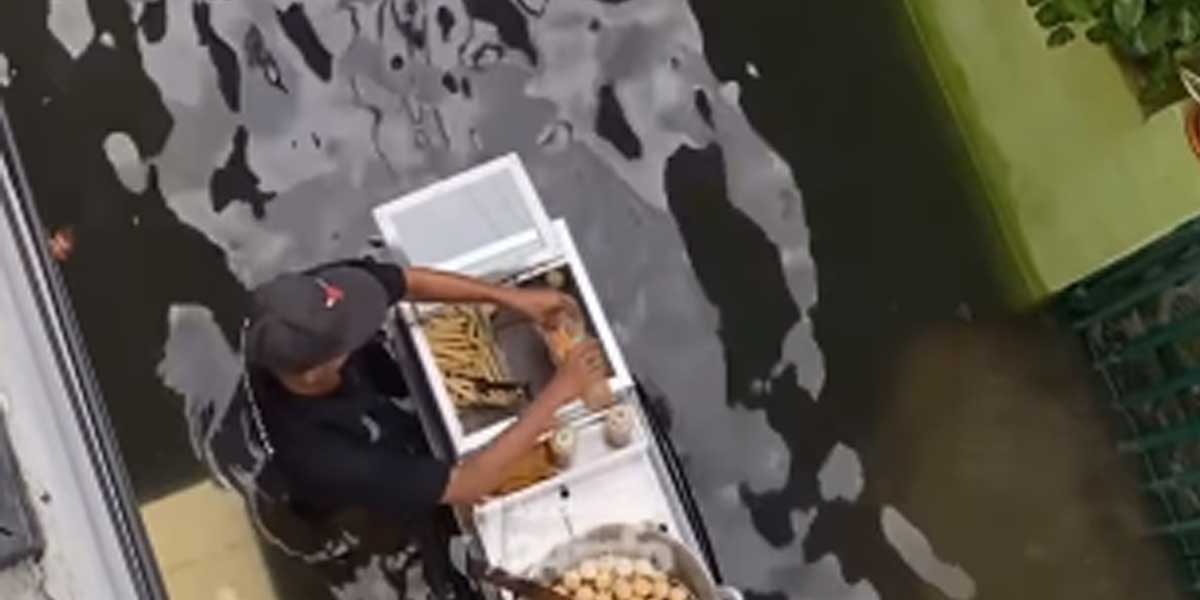 KITAINDONESIASATU.COM – Tengah viral di media sosial seorang penjual tahu bulat yang tetap berjualan di tengah banjir melanda sebuah pemukiman.