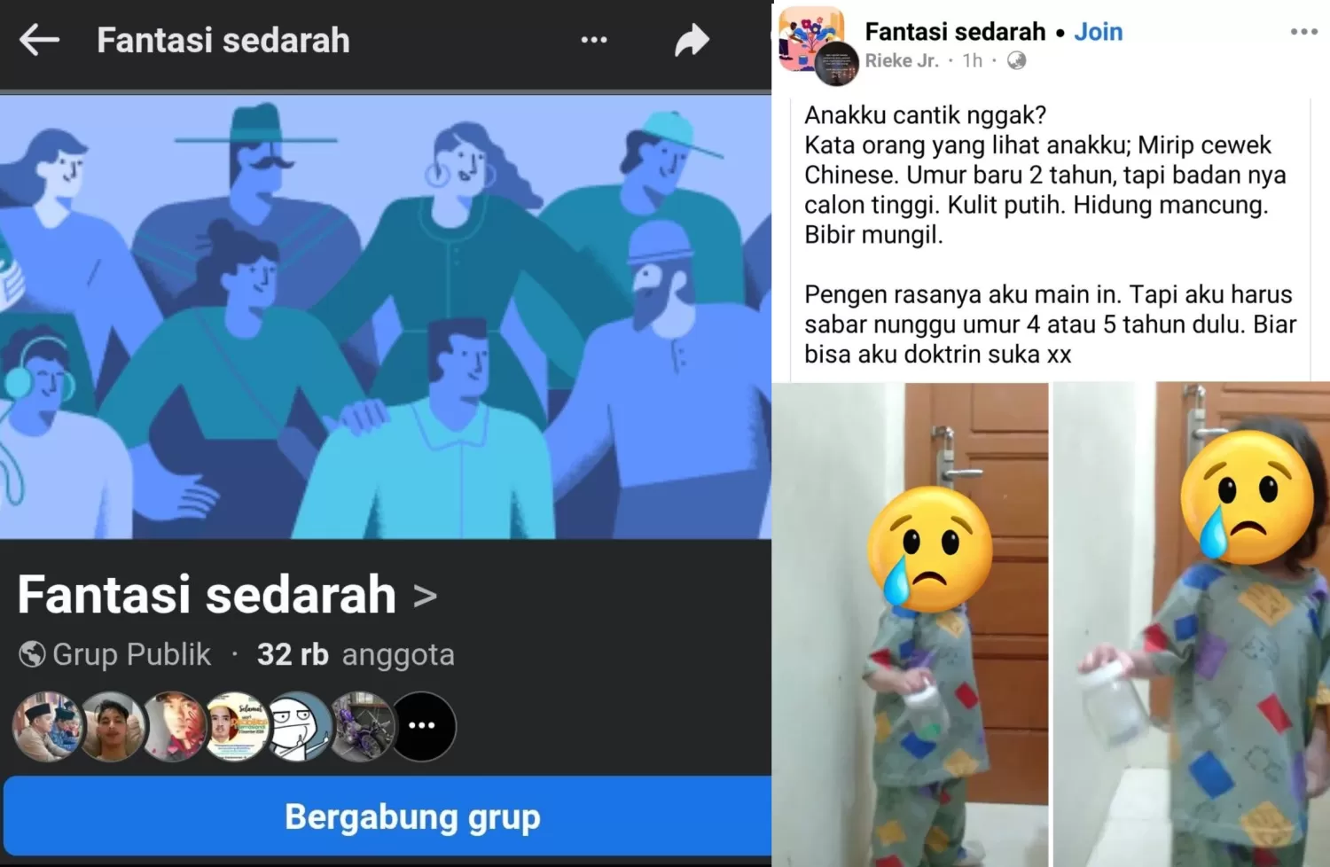 KITAINDONESIASATU.COM – Jagat media sosial dihebohkan dengan sebuah grup FB yang bertajuk ‘Fantasi Sedarah’ berisikan 32 ribu anggota. Apa yang membuat grup ini viral? Rupanya ada kaitanya dengan kasus inses atau hubungan seksual sedarah.